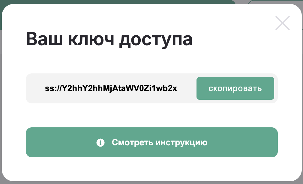 Вам нужен ключ, который выглядит как большая строка со случайными символами и начинается с ss://. Ключ приходит после оплаты, но его всегда можно заново получить, если есть активная подписка на whitevpn