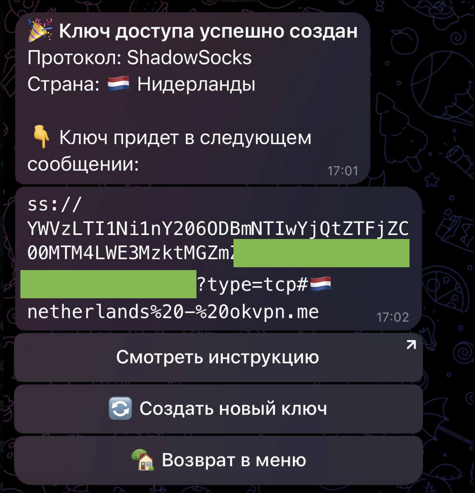 - Нажмите на кнопку «🔑 Получить ключ доступа»