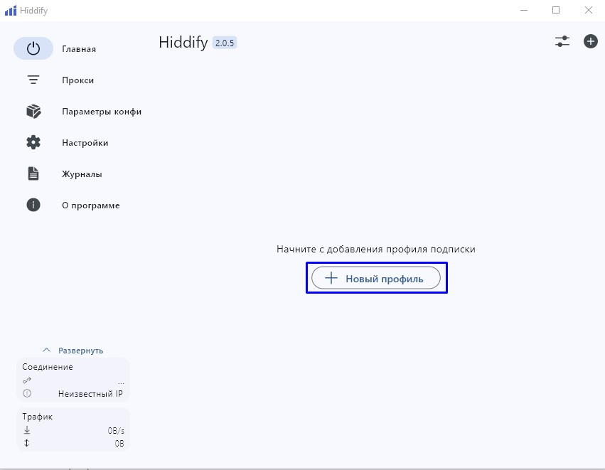 Нажмите на кнопку «Новый профиль»